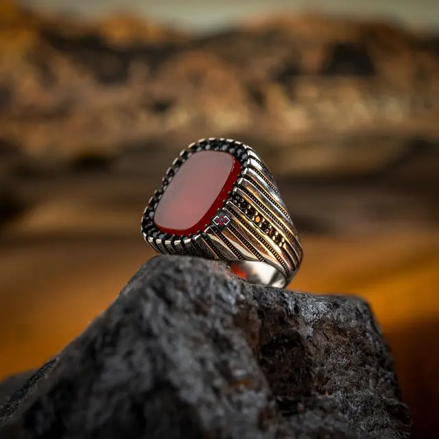 خاتم فضة عيار 925 مطلي روديوم مع حجر العقيق